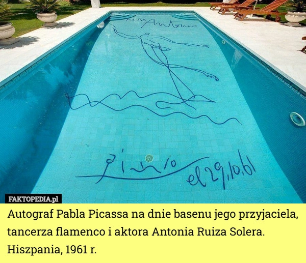 Autograf Pabla Picassa na dnie basenu jego przyjaciela, tancerza flamenco...