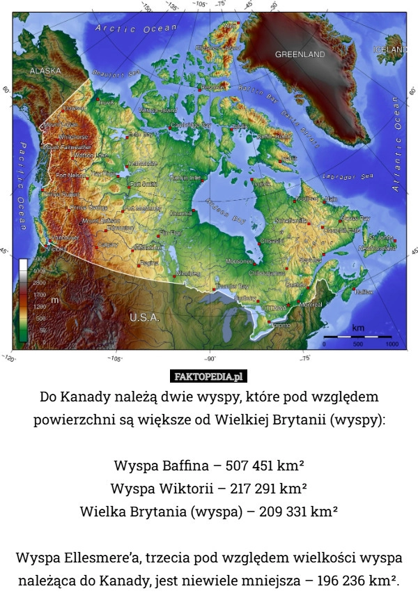 Do Kanady należą dwie wyspy, które pod względem powierzchni są większe od...