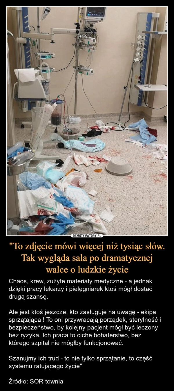 "To zdjęcie mówi więcej niż tysiąc słów. Tak wygląda sala po dramatycznej walce o ludzkie życie