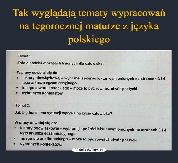 Tak wyglądają tematy wypracowań na tegorocznej maturze z języka polskiego