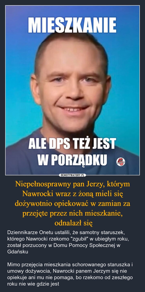 Niepełnosprawny pan Jerzy, którym Nawrocki wraz z żoną mieli się dożywotnio opiekować w zamian za przejęte przez nich mieszkanie, odnalazł się