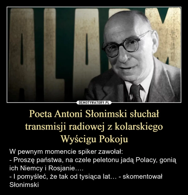Poeta Antoni Słonimski słuchał transmisji radiowej z kolarskiego Wyścigu Pokoju