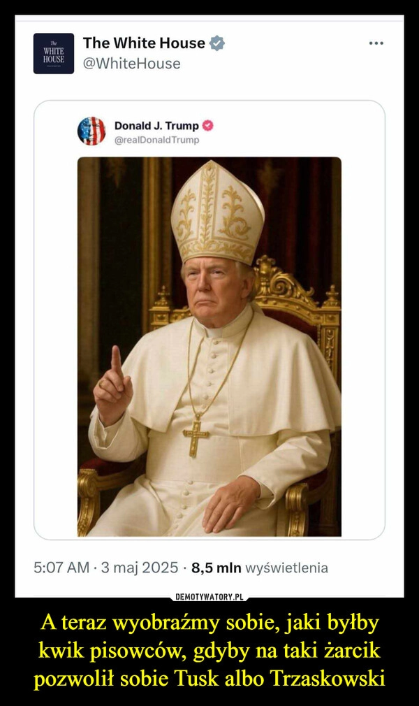A teraz wyobraźmy sobie, jaki byłby kwik pisowców, gdyby na taki żarcik pozwolił sobie Tusk albo Trzaskowski