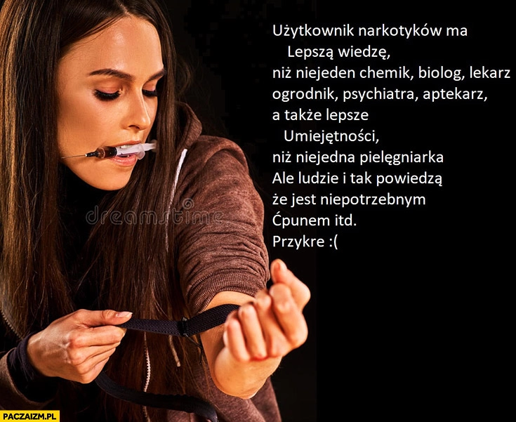Użytkownik narkotyków ma lepszą wiedz niż niejeden chemik, biolog, lekarz ale ludzie i tak powiedzą, że jest niepotrzebnym ćpunem przykre