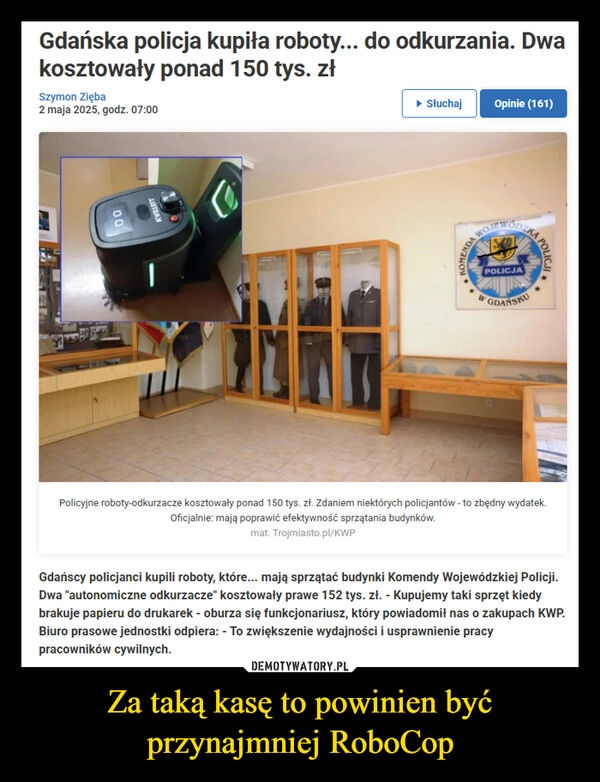 Za taką kasę to powinien być przynajmniej RoboCop