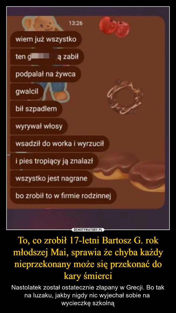 To, co zrobił 17-letni Bartosz G. rok młodszej Mai, sprawia że chyba każdy nieprzekonany może się przekonać do kary śmierci
