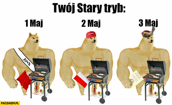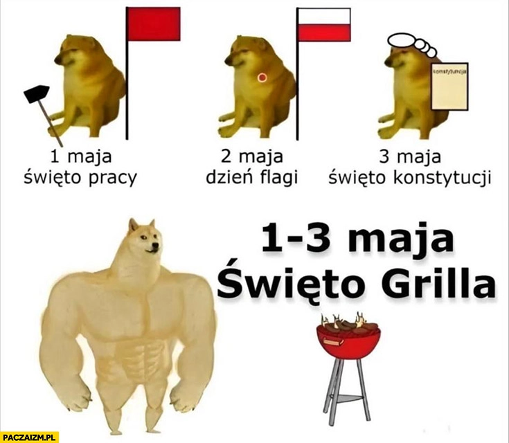 1-3 maja święto grilla pracy flagi konstytucji pies pieseł doge cheems