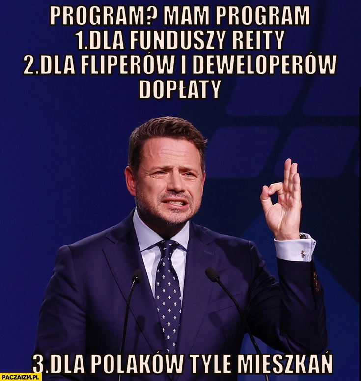 Trzaskowski program dla funduszy: REITy dla fliperów i deweloperów dopłaty, dla Polaków 0 mieszkań