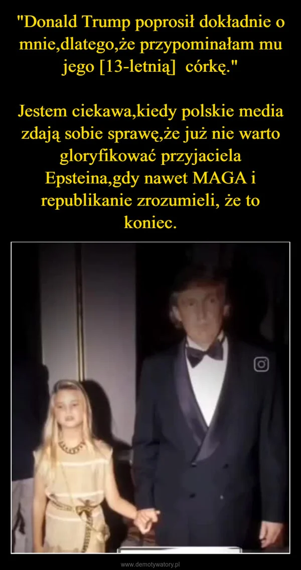 "Donald Trump poprosił dokładnie o mnie,dlatego,że przypominałam mu jego [13-letnią] córkę." Jestem ciekawa,kiedy polskie media zdają sobie sprawę,że już nie warto gloryfikować przyjaciela Epsteina,gdy nawet MAGA i republikanie zrozumieli, że to koniec.
